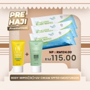 SUNSCRREEN + BODY WIPES 3X + MOISTURIZER