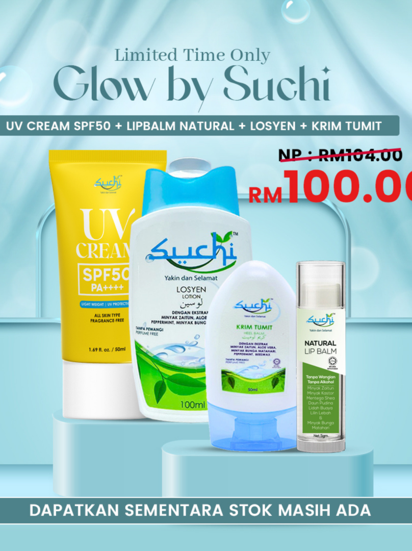 Dapatkan SPF50 + LOSYEN 100ML + KRIM TUMIT + LIPBALM NATURAL untuk penjagaan lengkap